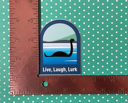 Sale price $4.00 USDThe sticker is of the loch ness monster and says Live, Laugh, Lurk underneath. It's made of weather resistant vinyl so it can be displayed indoors and outdoors or even... -