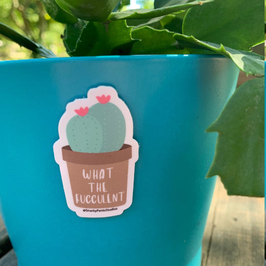 Sale price $4.00 USDThe vinyl sticker says “What the Fucculent." It's made of weather resistant vinyl so it can be displayed indoors and outdoors or even on items that go through the dishwasher!... -